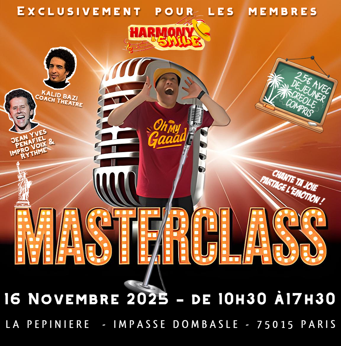 Rejoignez-nous pour une masterclass unique au Studio Harmony, où vous apprendrez des techniques de chant essentielles dans une ambiance chaleureuse et conviviale. Parfait pour tous les niveaux, cette session vous aidera à développer votre voix!
